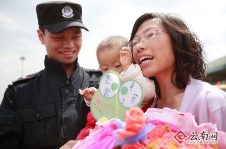 “歡迎回家。”這是援疆特警們踏上家鄉(xiāng)土地聽到的第一句問候,但在迎接戰(zhàn)友凱旋的民警心里,這句話已經(jīng)憋了很久。一聲問候、一束鮮花、一個大大的擁抱,不少特警被戰(zhàn)友拉到一邊合影。昆明市公安局特警支隊政治處主任楊春雷激動地說:“踏上家鄉(xiāng)的土地,看到家鄉(xiāng)的親人、朋友心中格外高興。特警隊員們圓滿完成赴疆維穩(wěn)工作,無愧于家鄉(xiāng)父老鄉(xiāng)親。”