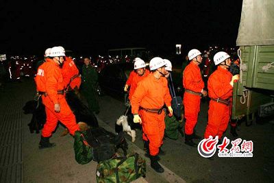 4月14日,地震發(fā)生后,省公安消防總隊立即成立應急救援指揮部。按照公安部消防局統(tǒng)一指揮和調(diào)度,總隊迅速調(diào)集了191名搶險救援攻堅隊員,于今天凌晨分兩批開赴震區(qū)。0: 30, 129 人在濟南機場乘山航 SC901專機起飛;與此同時,62 人在青島機場乘專機起飛。兩專機將直飛西寧,會合后立刻趕往玉樹縣增援。