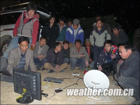 從青海省氣象局開出的應(yīng)急車已經(jīng)到達(dá)這里,在分派食物和水之后,省氣象局開始在現(xiàn)場指揮安裝設(shè)備,希望盡快恢復(fù)工作。