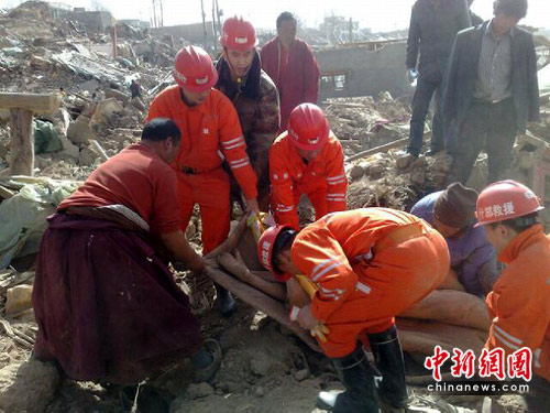15日凌晨0:40分,什邡救援隊(duì)接到玉樹州抗震救災(zāi)指揮部命令,前往玉樹州玉樹縣結(jié)古鎮(zhèn)結(jié)古寺參與救援。什邡救援隊(duì)隊(duì)員們不辭辛勞,在廢墟中發(fā)現(xiàn)一名中年婦女,尚有氣息,隊(duì)員們立即展開救援,經(jīng)過約40分鐘的緊張施救,順利地將其救出,經(jīng)簡(jiǎn)單的救治后,立即送往醫(yī)療隊(duì)救治。