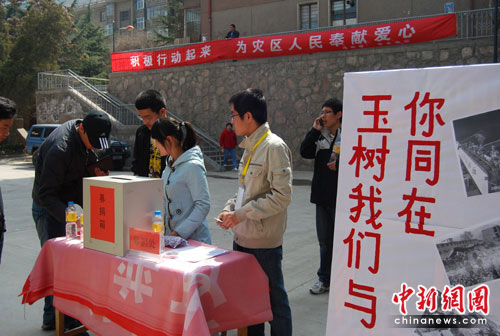 青海省玉樹縣發(fā)生強(qiáng)烈地震后,震區(qū)的災(zāi)情時(shí)刻牽動(dòng)著與青海情同手足的鄰居——甘肅。15日,西北民族大學(xué)發(fā)起了“援助青海玉樹災(zāi)區(qū)”活動(dòng),多個(gè)民族的學(xué)生為災(zāi)區(qū)同胞奉獻(xiàn)自己的綿薄之力。