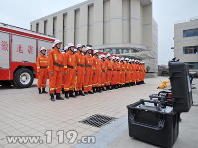 災(zāi)情發(fā)生后,合肥市消防支隊(duì)決定立即抽調(diào)50名富有救援經(jīng)驗(yàn)的特勤隊(duì)員組成合肥消防應(yīng)急救援隊(duì),攜帶生命探測(cè)儀、鑿巖機(jī)、液壓擴(kuò)張鉗、帳篷、海事衛(wèi)星電話等地震救援裝備,隨時(shí)待命出發(fā)。