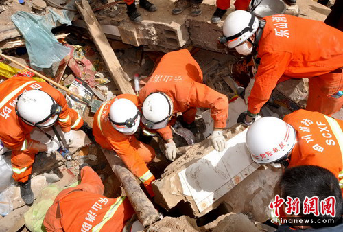 當(dāng)天9時(shí)20分許,四川消防總隊(duì)第三批攻堅(jiān)集訓(xùn)的鐵軍其中一搜救分隊(duì)在扎西巷一藏族居民區(qū)展開(kāi)搜救時(shí)生命探測(cè)儀突然有了“反應(yīng)”, 通過(guò)詢問(wèn)當(dāng)?shù)鼐用竦弥哼@棟半垮塌的三層居民樓內(nèi)確實(shí)還有四人在里面(初步認(rèn)定為兩對(duì)母子),但生死不明,并由于房屋損毀嚴(yán)重,其親屬也不知被埋人員的具體位置。雖經(jīng)反復(fù)搜索只能偶爾搜到非常微弱的“信號(hào)”,但隊(duì)員們?nèi)匀蝗φ归_(kāi)搜救。