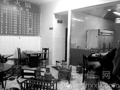 “砸!”一聲“令”下,幾十人拿著砍刀和鋼管,在火鍋店就開(kāi)始到處亂砍!班枥锱纠病被疱伒甑牟AТ胺鬯樾缘袈洌【破、餐具接二連三被砸碎,正在沸騰的火鍋被掀翻在地,墻上、地上灑滿紅油。頓時(shí)店里一片混亂,客人、服務(wù)員紛紛沖進(jìn)廚房躲避。