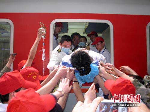 由于此次轉運的傷員大部分行動不便,蘭州車站安排了80多名技術工人拆卸車窗玻璃,并專門辟出一站臺為運送玉樹災區(qū)傷員“綠色通道”。