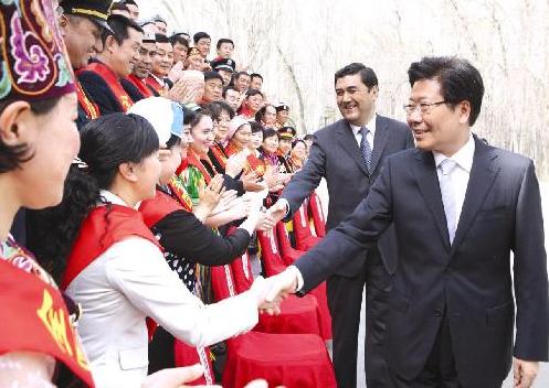 29日下午,在“五一”國際勞動節(jié)即將來臨之際,自治區(qū)黨委書記張春賢等領(lǐng)導與參加2010年全國勞動模范和先進工作者表彰大會載譽歸來的我區(qū)全國勞動模范和先進工作者舉行座談,共話新疆美好的明天。他強調(diào),要在全社會弘揚勞模精神,凝聚廣大職工群眾的智慧和力量,共同建設(shè)美好新疆。