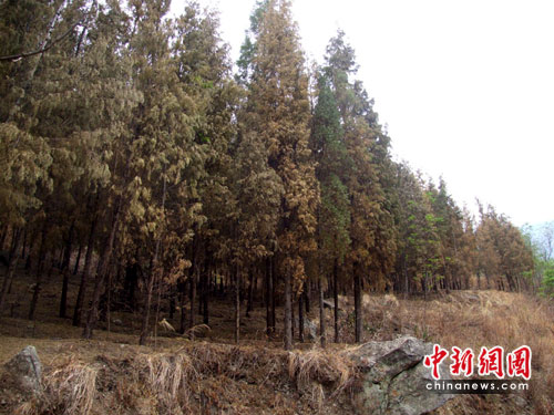 中新網(wǎng)昆明5月14日電( 鄭加升) 百年不遇的大旱,無(wú)情的肆虐著云南的大地。三季連旱的天氣,導(dǎo)致云南省東川區(qū)的樹(shù)木開(kāi)始大面積枯萎甚至死亡。