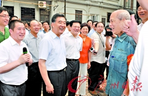 汪洋邊走邊看,認(rèn)真聽取介紹,要求廣州市總結(jié)獵德村改造的好經(jīng)驗(yàn)好做法,加快推進(jìn)城中村和舊城區(qū)改造。