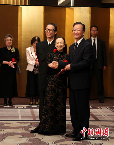 溫家寶總理在晚上的活動(dòng)中連續(xù)兩次提到去年11月11日在中南海紫光閣會(huì)見中國歸國者日中友好之會(huì)時(shí)的情景!按蠹医o我唱了一首動(dòng)聽的歌,我有兩個(gè)家,一個(gè)在東瀛,一個(gè)在中華。我聽了以后和你們一樣熱淚盈眶,你們確實(shí)把中國也當(dāng)成了自己的家,始終沒有忘記!