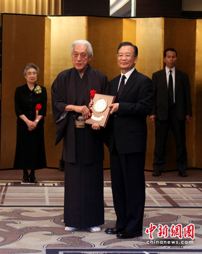 池田澄江沒想到自己這么快就又見到了溫總理,而且溫總理還對他們唱的那首歌一直念念不忘。5月30日晚,溫家寶總理剛剛抵達(dá)東京,未作休息旋即會(huì)見日本民間友好團(tuán)體和友好人士代表,并向他們頒發(fā)了特別貢獻(xiàn)獎(jiǎng)。
