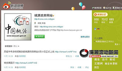 5月30日,記者通過(guò)國(guó)內(nèi)幾家知名微博平臺(tái)管理員查詢得知,湖南省內(nèi)地方政府開(kāi)通官方微博的只有桃源縣政府。