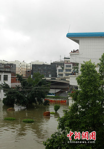記者在來賓市實驗中學(xué)看到,該校已成為一片湖泊。水深處約有1.6米,已經(jīng)淹過成年男子肩膀。水中七零八落飄散著住戶的生活用品,一樓居民已經(jīng)全部撤離。消防官兵自早上8時許開始對被困師生進(jìn)行救援,直至下午5時,該校1100名被困師生及家屬全部撤至安全地帶。學(xué)校內(nèi)停電并且無法出行,影響了不少居民的正常生活。周邊幾家商鋪圍擋自家門口防止積水流進(jìn)店內(nèi),用各種器皿向外倒水。