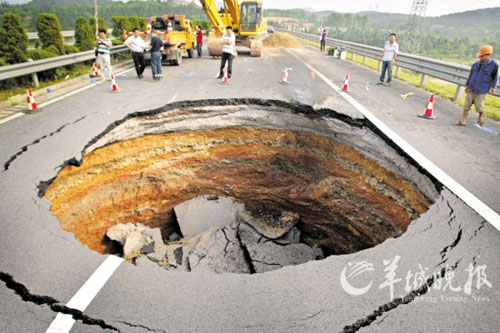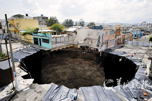 近日,國(guó)內(nèi)各地屢現(xiàn)“天坑”。而地球的那一端似乎也不平靜,南美危地馬拉出現(xiàn)了一個(gè)直徑30米的巨大“天坑”。而出現(xiàn)此坑不久后,這里就發(fā)生了火山噴發(fā)!疤炜印钡某霈F(xiàn),是否就是某種災(zāi)難的預(yù)兆?羊城晚報(bào)記者專(zhuān)訪(fǎng)了中山大學(xué)張珂教授和華中師范大學(xué)揭毅教授,他們認(rèn)為,此次頻現(xiàn)的“天坑”其實(shí)是地陷,與地震關(guān)聯(lián)不大,“人禍”要大于“天災(zāi)”。