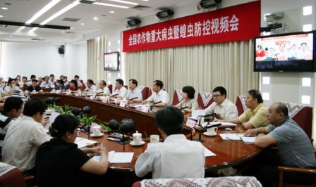 會議由農業(yè)部總經濟師、全國農作物重大病蟲暨治蝗指揮部副指揮長陳萌山主持。在31個省、自治區(qū)、直轄市設立了分會場,各省(區(qū)、市)農業(yè)(農牧、畜牧)廳(委、局),新疆生產建設兵團農業(yè)局、黑龍江農墾總局負責人,有關省(區(qū)、市)農作物重大病蟲暨蝗災防治指揮部成員,重點市、縣蝗蟲防治領導機構成員等,共1600余人參加會議。