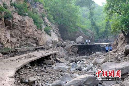 據(jù)介紹,13日晚20時許,淶水縣九龍鎮(zhèn)突降百年不遇特大暴雨,并伴有大風冰雹,頃刻間,山洪裹著巨石、泥漿呼嘯而下,席卷了九龍鎮(zhèn)沿河道的六個村莊,致使嶺南臺、莊里、莊頭、高鋪、柏林城、南莊六個村受災嚴重。據(jù)初步估算,受災人口3100多人、牲畜2000多頭(只),倒塌損壞房屋499間、橋梁5座、車輛31輛,毀壞道路10.7公里、耕地1312畝、樹木16925棵,另有兩人失蹤,直接經(jīng)濟損失達8197.8萬元。