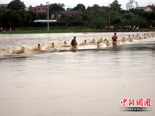 雖然被困人員距救援人員的岸邊只有十多米,但石橋至岸邊的小路早已被沖瀉而下的急流隔開,消防戰(zhàn)士跳入齊胸深的水中,幾次欲通過石橋接近被困者,都被強(qiáng)大的水流沖到一邊,根本無(wú)法到達(dá)近在眼前的石橋救人,而且整個(gè)橋面及欄桿都在水面下,一個(gè)不慎自身都會(huì)存在危險(xiǎn)。