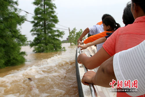 中新網(wǎng)臨川6月23日電(艾永全 何柳斌 劉占昆)撫河唱凱決堤進入第三天,23日下午,中新社記者重返重災(zāi)區(qū)羅針鎮(zhèn),天空開始稀稀疏疏的下著小雨,福銀高速兩旁汪洋一片,沖鋒舟馳騁在洪水當(dāng)中解救被困群眾。由于大部分村民已經(jīng)撤離,各地紛紛建立“護村隊”巡防保護村子安全。