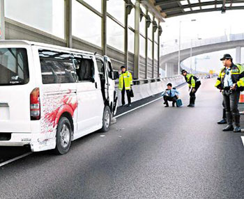客貨車無人駕駛,但仍然繼續(xù)沖前,橫越兩條行車線,再撞左邊石臺,將十多個“雪糕筒”卷入車底,沖出300米后,再連續(xù)撞擊左石臺,再沖出100米才停下,車頭和車身毀爛,途經(jīng)駕駛者立即致電報警。