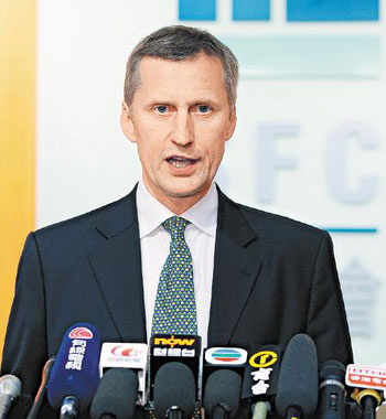 證監(jiān)會行政總裁韋奕禮22日傍晚臨時(shí)會見傳媒,公布該會與新鴻基投資服務(wù)達(dá)成協(xié)議的消息。他指出,這次處理方法所達(dá)致的成果,符合投資者的最佳利益,對這宗個(gè)案所達(dá)致的結(jié)果感到相當(dāng)滿意。