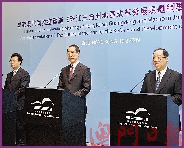 中新網(wǎng)2月20日電 《澳門日?qǐng)?bào)》今日在頭條刊發(fā)報(bào)道稱,“粵港澳共同推進(jìn)實(shí)施《珠江三角洲地區(qū)改革發(fā)展規(guī)劃綱要》聯(lián)絡(luò)協(xié)調(diào)會(huì)議”19日在香港舉行,粵港澳三地就四個(gè)重點(diǎn)工作達(dá)成共識(shí)。