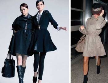 左:X形大衣寬松的燈籠袖高高隆起,塑造完美的肩部輪廓,搭配黑色皮質(zhì)長手套,顯得酷感十足。系緊腰帶讓大衣下擺張開,形成像New Look一樣的復古輪廓,搭配黑色長靴,既保暖又摩登!