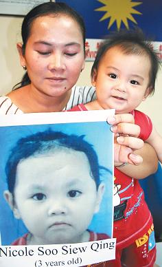 事主5日帶著只有9個月大的兒子艾比,向馬華公共服務及投訴部主任拿督張?zhí)熨n求助,希望透過媒體和公眾的幫助尋找愛女。