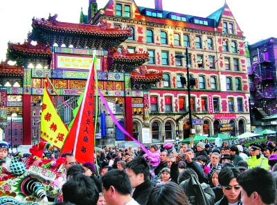 唐人街的精神文化生活也十分豐富。在一些商店里,甚至能找到中國(guó)內(nèi)地或香港出版并由專機(jī)空運(yùn)至曼城出售的報(bào)紙。每逢中國(guó)重大節(jié)日,尤其是農(nóng)歷新年,整個(gè)唐人街就會(huì)變成狂歡的海洋。蜂擁而至的本地居民與華人一道,在鞭炮齊鳴、鑼鼓喧天的喜慶氣氛下,加入到舞獅舞龍的龐大隊(duì)伍中。此情此景,讓游子們感覺仿佛重歸故鄉(xiāng)。