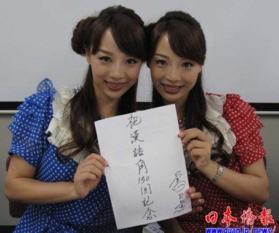 中新網(wǎng)7月21日電 據(jù)日本僑報(bào)報(bào)道,活躍在日本NHK電視臺(tái)漢語(yǔ)教學(xué)節(jié)目的中國(guó)湖北雙胞胎姊妹組合“鶯和燕”(中國(guó)名黃鶯、黃燕),7月19日在東京參加第二屆漢語(yǔ)節(jié)時(shí),特地來(lái)到日本僑報(bào)社的展位前,聽取了該社創(chuàng)辦星期日漢語(yǔ)角的情況介紹。得知漢語(yǔ)角創(chuàng)辦三周年紀(jì)念大會(huì)將于8月8日在東京舉行時(shí),姐妹倆非常高興地題寫了“祝漢語(yǔ)角150回”,表達(dá)她們對(duì)日本朋友學(xué)習(xí)漢語(yǔ)的支持。