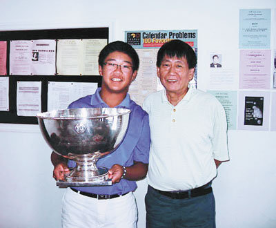 中新網(wǎng)7月28日電 據(jù)美國《世界日報》報道,14歲的華裔少年劉繼(Jim Liu)24日打破了老虎伍茲的紀錄,成為美國青少年高爾夫錦標賽史上最年輕的冠軍,他25日返回紐約長島Smithtown家中,26日立即把新贏得的大獎杯抱到皇后區(qū),與教他數(shù)學多年的張信堃老師一同分享他的榮耀與喜悅。
