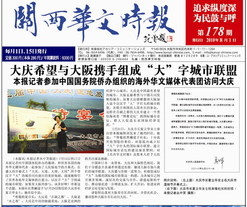 7月31日,大慶市長夏立華女士親自給日本《關(guān)西華文時報》編輯部發(fā)來了她的回信,她說:“尊敬的黑瀨道子社長:十分高興收到您的來信。對您提出成立以“大”字打頭的國際城市聯(lián)盟、建立國際城市論壇的建議深表贊同,對《關(guān)西華文時報》及您本人給予大慶的關(guān)注深表感謝。中國和日本一衣帶水,大慶和大阪特色相近。我們十分愿意并真誠希望通過貴報,邀請大阪市加入我們的城市聯(lián)盟。大慶愿與貴報一道努力,積極促成以“大”為媒的國際城市聯(lián)盟這一構(gòu)想,為各城市之間開展多領(lǐng)域、深層次的交流與合作,搭建起新的平臺,推動彼此進(jìn)一步增進(jìn)友誼,擴(kuò)大共識,促進(jìn)亞洲經(jīng)濟(jì)文化交流與發(fā)展。請您轉(zhuǎn)達(dá)我對大阪市市長的問候。并借此機(jī)會,邀請您和大阪市市長訪問大慶!(渡邊)