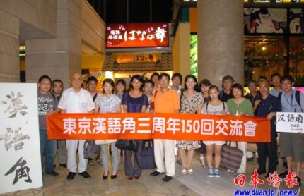 據(jù)介紹,2007年8月,日本僑報(bào)社在東京創(chuàng)辦了首個(gè)星期日漢語角,至今已開展150次交流活動(dòng),先后有5000多人次參加。去年8月,還在東京郊外的崎玉市浦和車站前創(chuàng)設(shè)了浦和漢語角。今年6月,又在東京郊區(qū)的小平市創(chuàng)辦了首個(gè)室內(nèi)漢語角。東京的星期日漢語角先后邀請為中日交流作出貢獻(xiàn)的學(xué)界、政界和商界精英前來發(fā)表演講,獲得廣泛好評(píng)。同時(shí),漢語角還與國內(nèi)的多個(gè)日語角舉行定期交流活動(dòng)。