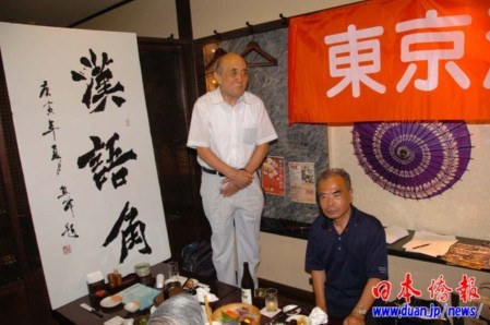 交流會(huì)上展示了旅日華人書(shū)法家熊峰和日本書(shū)法家冢越誠(chéng)分別題寫(xiě)的“漢語(yǔ)角”,受到大家的好評(píng)。