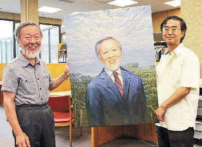 中新網(wǎng)8月11日電 據(jù)美國《世界日報》報道,畫家余春明9日捐贈諾貝爾獎得主高錕半身畫像一幅給美國斯坦福大學(xué)東亞圖書館收藏。東亞圖書館館長邵東方表示,這幅畫將永久懸掛在東亞圖書館里。高錕與夫人黃美云,兒子高明漳及親友多人出席這項捐贈儀式。