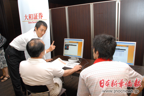 記者在會場上還看見,大和證券為了舉辦此次說明會,準(zhǔn)備工作可謂面面俱到?紤]到中午時間,天氣炎熱,參加說明會的在日華人可能來不及吃午飯,大和證券就特意為大家準(zhǔn)備了豐盛的盒飯和就餐時間;為了讓參會者對外匯實際操作有一個實際感覺,大和證券在會場一側(cè)設(shè)置了數(shù)臺電腦和最新款式的iPad平板電腦供大家模擬操作,遇到疑難問題,大和證券的員工們給予熱心仔細地解說。