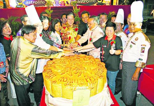 該月餅市價(jià)1萬(wàn)8000令吉,重388公斤,38吋寬12吋高,是梁賢食品有限公司首創(chuàng)。