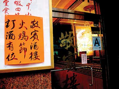 據(jù)敬賓酒樓的業(yè)者介紹,雖然近日才貼出告示,但火雞節(jié)宴席的預(yù)訂其實(shí)早在一年前就開始,目前僅中午12點(diǎn)開始的早場(chǎng)還有桌位可供預(yù)訂,下午3點(diǎn)開始的午場(chǎng)和晚上6點(diǎn)開始的晚場(chǎng)宴席早就一搶而空。在閩籍鄉(xiāng)親集中的小區(qū),每年的感恩節(jié)都是酒樓生意最旺的時(shí)候,去年感恩節(jié)敬賓酒樓所接做的宴席便逾100場(chǎng)。