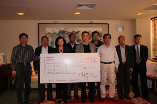 中新網(wǎng)4月23日電 據(jù)新西蘭中華新聞網(wǎng)消息,新西蘭中國(guó)和平統(tǒng)一促進(jìn)會(huì)與新西蘭中國(guó)團(tuán)體聯(lián)合會(huì)4月22日將一張13000紐幣的支票遞交到奧克蘭總領(lǐng)館廖菊華總領(lǐng)事手中,來(lái)表達(dá)新西蘭華人華僑對(duì)青海玉樹地震災(zāi)區(qū)同胞的濃濃情意。