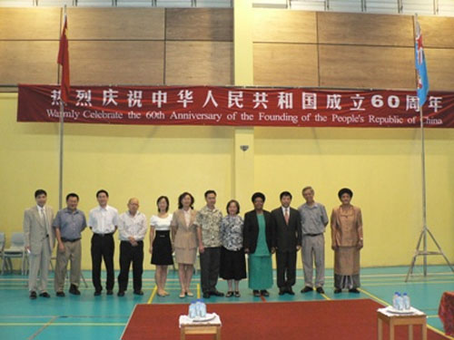 中新網9月24日電 據(jù)中國駐斐濟大使館消息,9月18日,由在斐華人創(chuàng)辦和管理的斐濟名!菹蓪W校舉辦慶祝中華人民共和國成立60周年升旗儀式和文藝活動,韓志強大使應邀出席并講話。斐華人教育協(xié)會會長余倩莊、逸仙學校中小學師生代表700余人參加!