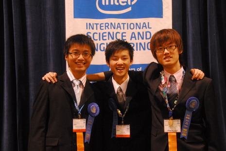 中新網(wǎng)3月12日電 三名來(lái)自成都國(guó)際學(xué)校的高中生薛來(lái)(中國(guó)籍)、林晨陽(yáng)(新加坡籍)、李賢基(韓國(guó)籍)共同榮獲2009-2010影響世界華人盛典“希望之星”領(lǐng)域的獎(jiǎng)項(xiàng)。2009年5月,他們憑借獨(dú)立研發(fā)的“啟發(fā)多觸式界面數(shù)據(jù)傳輸”系統(tǒng),榮獲有全球青少年科學(xué)競(jìng)賽“世界杯”之稱的“英特爾國(guó)際科學(xué)與工程大獎(jiǎng)賽”團(tuán)體一等獎(jiǎng)。