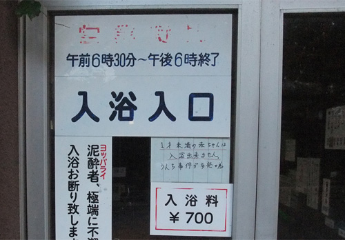 有一回路過京都一處公共浴池,看到一張雷人的小紙條,并同“拒絕醉漢入內(nèi)”一起貼出來。上面寫的是“謝絕不滿1周歲的未成年幼兒入浴,因?yàn)榘l(fā)現(xiàn)他們?cè)诶锩胬侠桶!?/p>