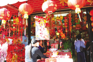 虎年的腳步聲近了,中國(guó)城的大小商家鉚足了勁,準(zhǔn)備來(lái)個(gè)“開(kāi)門(mén)紅”,以虎為圖案的宣傳招牌到處可以看見(jiàn)。走在中國(guó)城的街道上,最能夠吸引大家眼球的是迎新春的“中國(guó)紅”的各種飾物!盎⒛暾胸(cái)”掛件,紅燈籠,紅春聯(lián),紅色的吉祥物、招財(cái)進(jìn)寶的童子,健康長(zhǎng)壽的壽星,顏色全部以紅色為基調(diào),讓整條百老匯大街喜氣洋洋。店員珍妮告訴記者,前來(lái)詢(xún)問(wèn)“虎年商品”的華人、“洋人”都很多,他們都很懂中國(guó)新年,知道挑選與生肖有關(guān)的小商品。她說(shuō),不少學(xué)校的老師,也前來(lái)購(gòu)買(mǎi)一些“虎年紅包袋”及可愛(ài)小老虎的飾件;這些東西老師都將用于課堂,讓學(xué)生了解中國(guó)人過(guò)年的民俗,他們還會(huì)給學(xué)生發(fā)“新年紅包”。