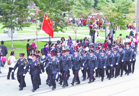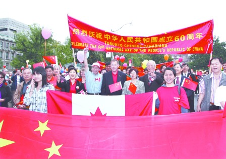 中新網(wǎng)9月29日電 據(jù)加拿大《明報(bào)》報(bào)道,為慶祝中國(guó)國(guó)慶60周年,多倫多華人小區(qū)各界27日聯(lián)合舉辦大型的中國(guó)國(guó)慶大巡游,參加的華人社團(tuán)超過(guò)40個(gè),連多倫多警隊(duì)今年也派出隊(duì)伍參加巡游。