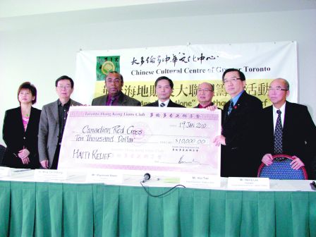 在當(dāng)日記者會上,多個機(jī)構(gòu)以不同方式為海地大地震賑災(zāi):湛山精舍捐款1.5萬元﹑多倫多香港獅子會捐款1萬元﹑多倫多雅賢獅子會5000元﹑多倫多柏麗獅子會5000元等。而也有團(tuán)體則以攤位義賣物品﹑發(fā)動會員捐獻(xiàn)……務(wù)求盡一分力﹑發(fā)一分光,幫助海地災(zāi)民早日恢復(fù)正常生活。