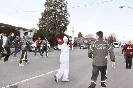 中新網(wǎng)2月11日電 據(jù)加拿大《明報(bào)》報(bào)道,加拿大列市冬奧圣火傳遞第一棒的火炬手吳珍妮,是當(dāng)?shù)爻錾牡诙A裔,9日她的家人朋友都紛紛趕來為她助威加油,丈夫更手持小型錄像機(jī)一路跟著跑,力求拍下妻子傳送火炬的全部過程。