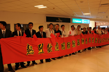 中新網(wǎng)2月24日電 據(jù)阿根廷《新大陸周刊》報道,當(dāng)?shù)貢r間2月23日下午18點40分,“文化中國 四海同春”南美藝術(shù)團(tuán)一行18人抵達(dá)阿根廷首都布宜諾斯艾利斯,旅居阿根廷近百名僑胞早早等候在布市國際機(jī)場,熱烈歡迎藝術(shù)團(tuán)的到來。