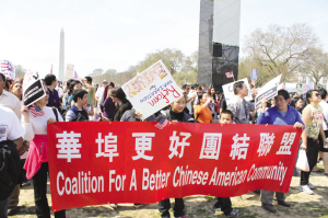估計(jì)有1千多華人參與了21日下午在華府國家廣場舉行的移民集會和游行,這是近年來華人參與移民權(quán)益游行最踴躍的一次。