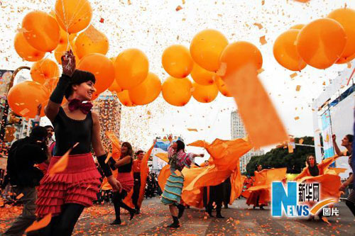 阿根廷的80多個移民團體參加了當天的游行。來自世界各地的4000余名移民和他們的后代身著傳統(tǒng)服飾,或攜帶祖籍國特產(chǎn),或表演傳統(tǒng)文藝,載歌載舞地穿過位于市中心的七月九日大街。