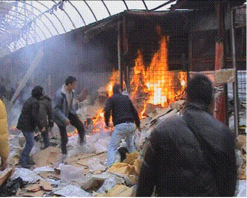 當(dāng)?shù)貢r間中午11時半,在羅馬尼亞稅務(wù)總局警察對尼羅市場的玩具區(qū)進行封鎖大約10分鐘后,挨著玩具區(qū)的垃圾堆突然起火,火勢迅速竄升至4米左右。100余名市場華商及各國商人拿著滅火器、水盆等紛紛趕來救火,火被迅速撲滅。這時候現(xiàn)場開始混亂,有沖動的商戶向警察扔紙箱,警察也拿著警棍驅(qū)趕市場商戶,沒料想未被完全撲滅的余火忽又燃燒起來,火勢開始蔓延,現(xiàn)場人們重又投入救火之中。中國駐羅使館有關(guān)人員及市場維權(quán)委員會負(fù)責(zé)人潘繼東等人趕到調(diào)解,混亂稍稍平息。據(jù)知,火災(zāi)沒有造成重大損失。