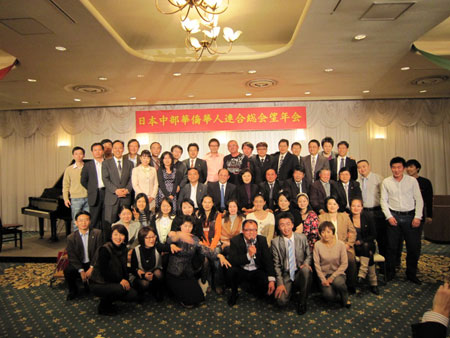 中新網(wǎng)12月16日電 據(jù)日本新華僑報(bào)網(wǎng)報(bào)道,12月13日,日本中部華僑華人聯(lián)合總會(huì)2009年度忘年會(huì)在三重縣合歡鄉(xiāng)酒店舉行。中部地區(qū)13個(gè)僑團(tuán)、3家中資企業(yè)及各界華僑華人代表80多人歡聚一堂,中國(guó)駐名古屋張立國(guó)總領(lǐng)事出席活動(dòng)并講話。