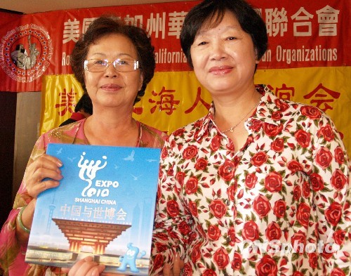 當(dāng)?shù)貢r(shí)間9月2日,由上海市僑聯(lián)黨組書記李葳萍率領(lǐng)的“上海世博會(huì)宣導(dǎo)團(tuán)”一行6人飛抵美國洛杉磯,受到南加州社團(tuán)聯(lián)合會(huì)50多個(gè)僑團(tuán)代表的熱烈歡迎。李葳萍(右)向美國華人婦女聯(lián)合會(huì)會(huì)長黃惠珍贈(zèng)送美國華人第一張2010年上海世博會(huì)入場券。 中新社發(fā) 盧威 攝